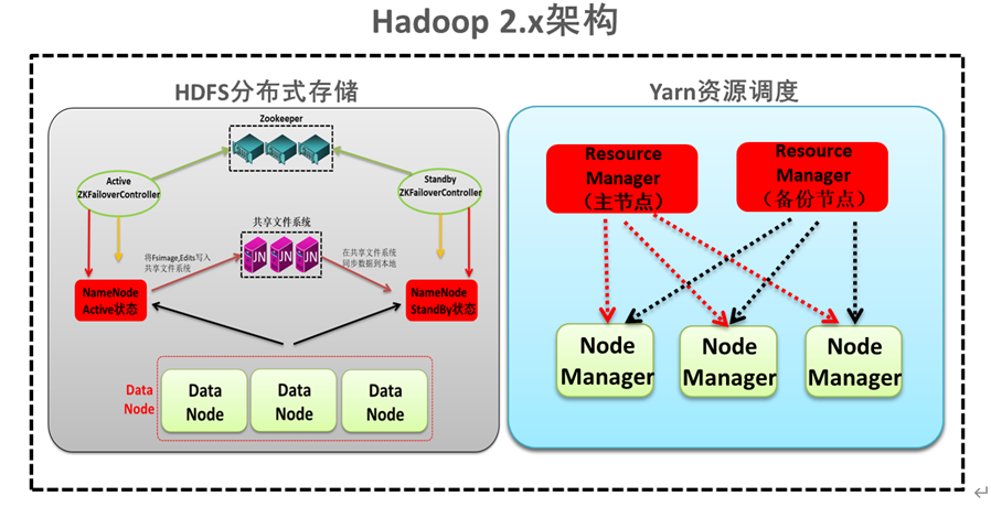 ResourceManager:Yarn平台的主节点,主要用于接收各种任务,通过两个,构建成高可用