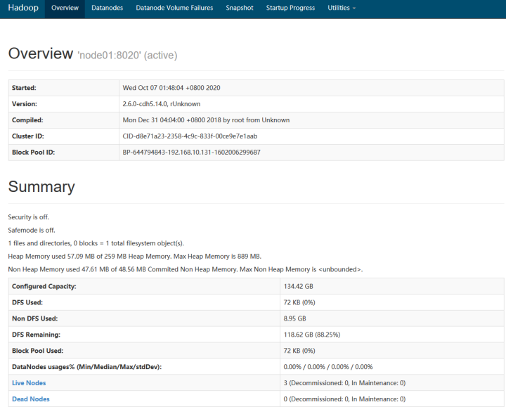 - 启动namenode node01、02、03节点 ./hadoop-daemon.sh start datanode
