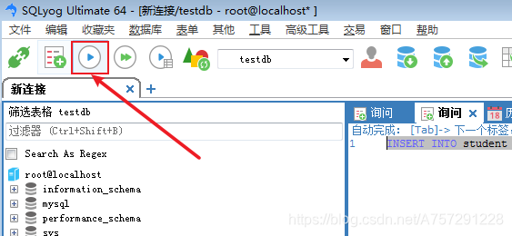 🐶1_bit:这个时候我们要对某一个数据库进行数据插入操作,第一步需要点击一个数据库表,在这里我们点击以及创建好的 student。