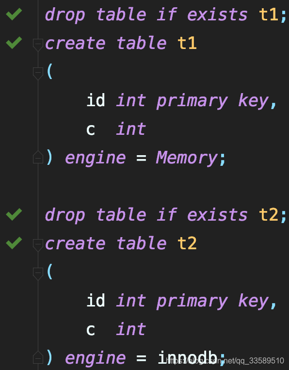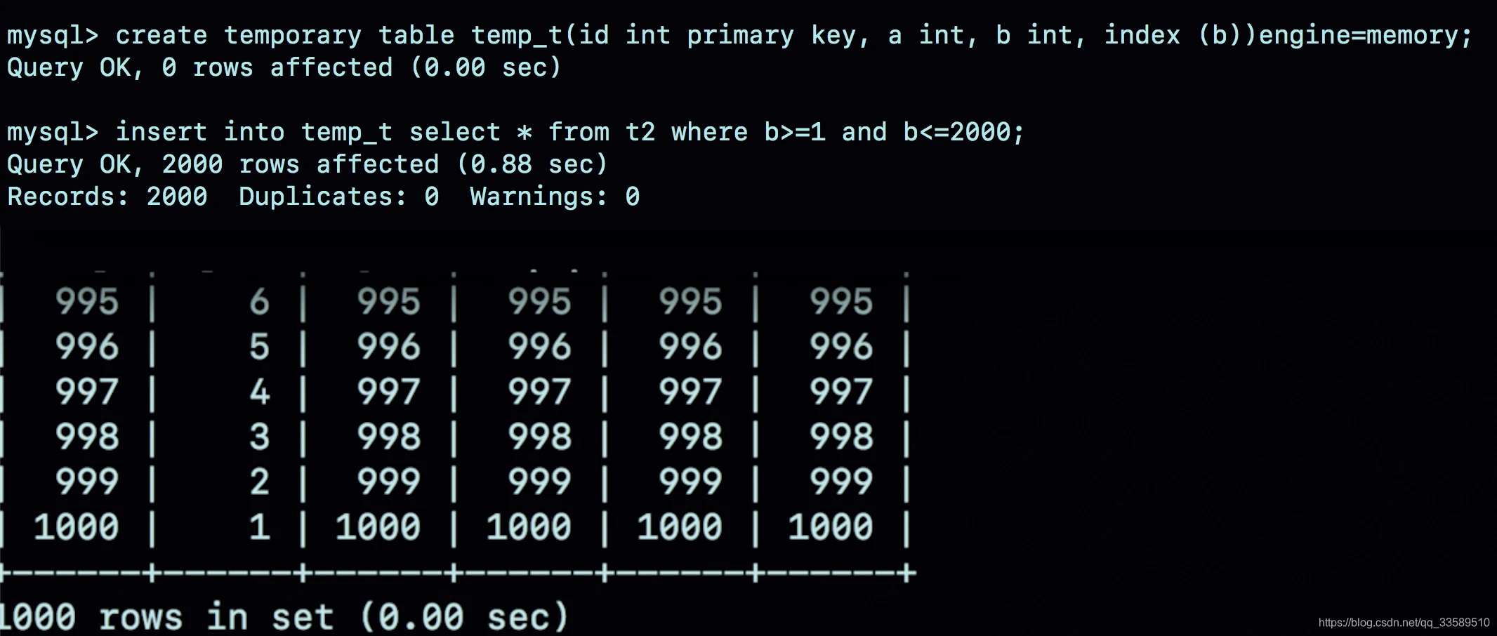 - 使用内存表不需要写磁盘,往表temp_t的写数据的速度更快