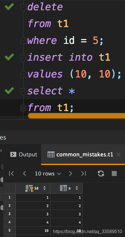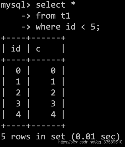 可见,id=10这行出现在id=4之后,即原来id=5这行数据位置。