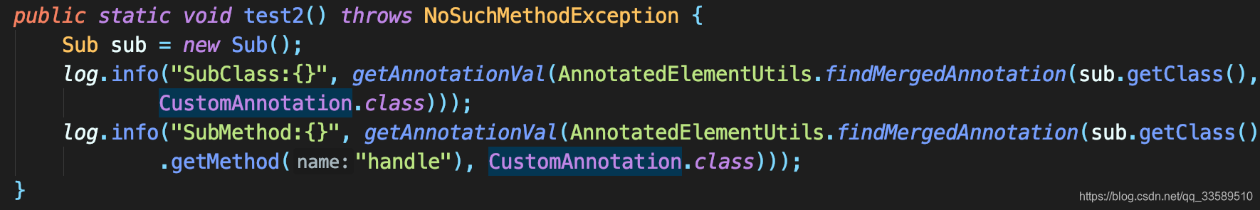 - 如果带注解的元素是方法,则在超类中搜索方法