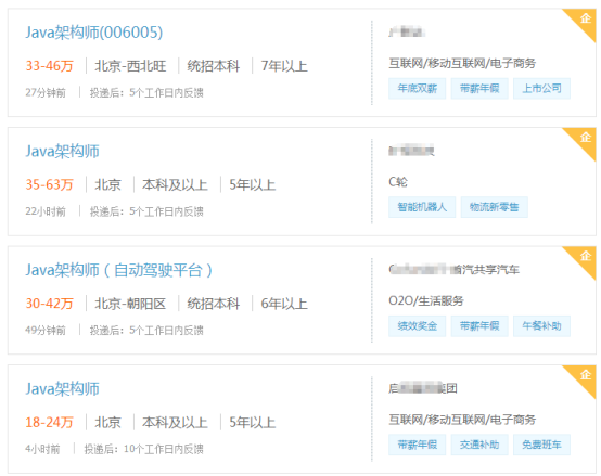以上就是我分享的Java架构师的年薪。当然想成为高薪的架构师也不是一蹴而就的,需要经过实战历练,要有扎实的技术开发能力和丰富的项目管理经验。如果未来你想成为架构师,一定要在程序员时期对自己有严格的要求。并且通过不断的充电学习,提升自己的综合能力,只要平时多用心,可以在最短的时间内实现跨越式提升,成为Java架构师。