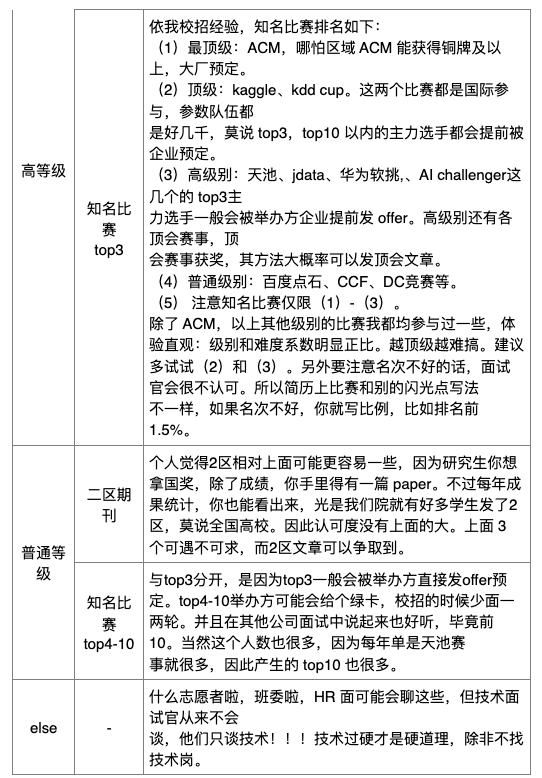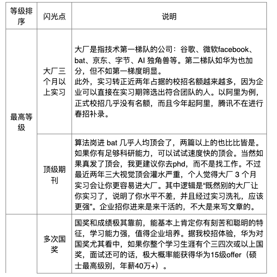 emmm 据个人面试经验,简历上的闪光点排名及说明如下表: