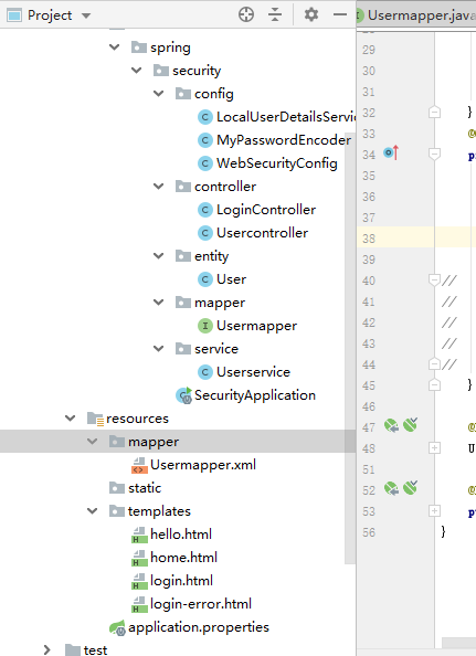 先自定义UserDetailsService类来实现UserDetailsService类,并且重载loadUserByUsername(String s)方法,s是用户输入的用户名,将用户信息注入进来