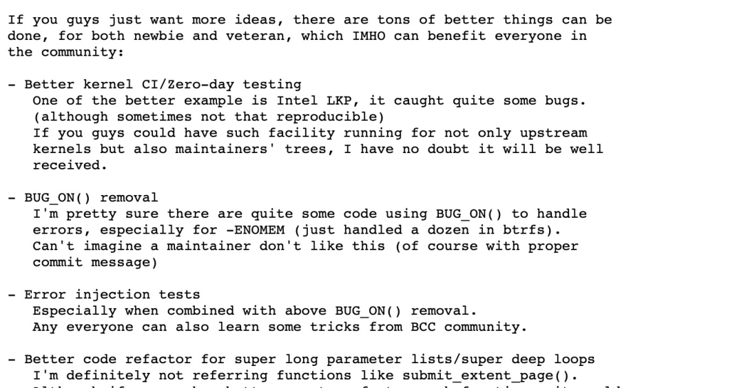 他认为这样的做法只会损害公司的荣誉,请该提交者停止这种刷KPI的行为,为Linux开源社区做出真正的贡献。