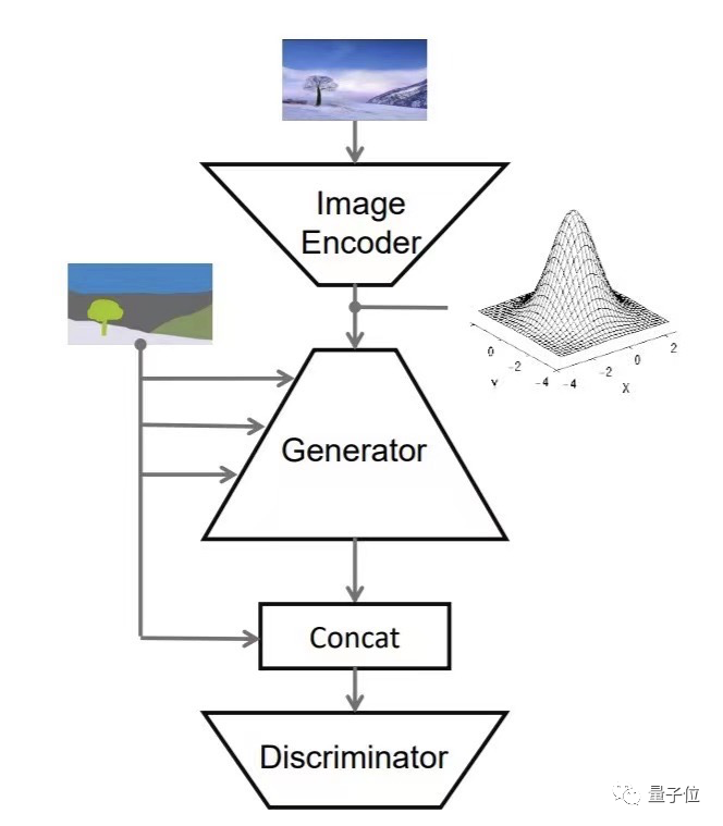 这样语义信号就可以作用于所有层的输出,然后再进行一下上采样调整就可以交给判别器了。
