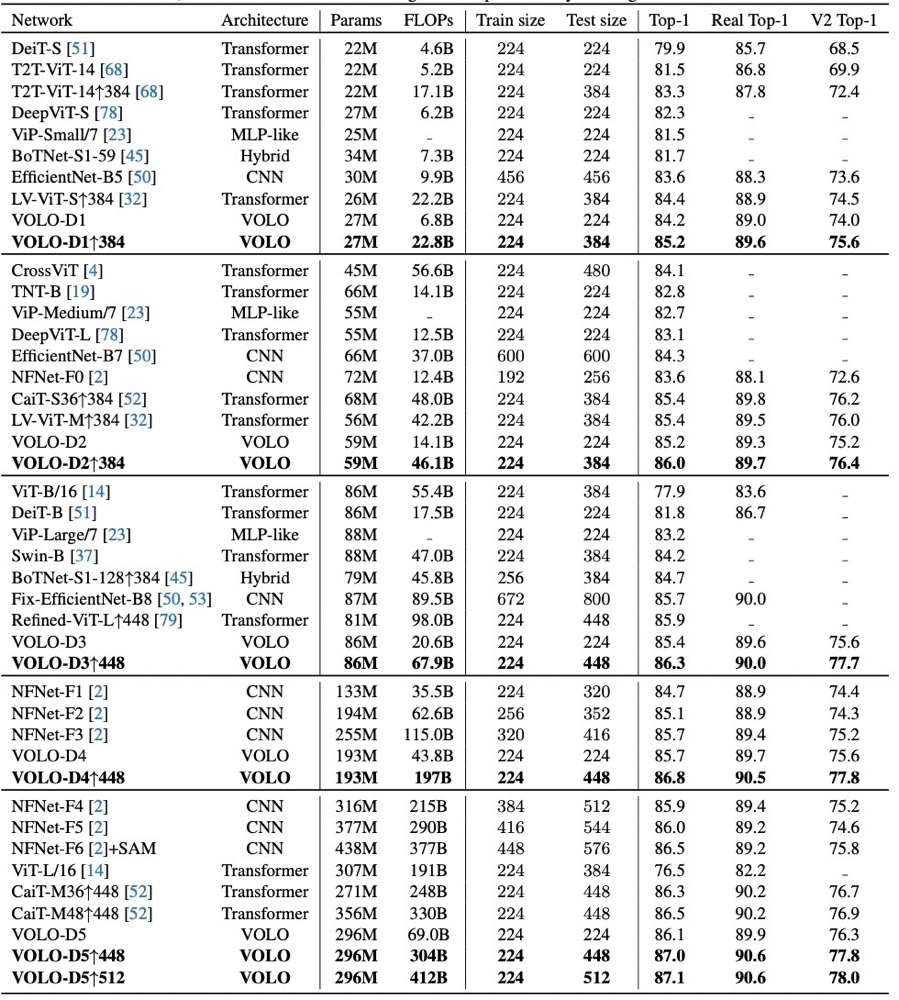 这不,最近一个叫做VOLO的Transformer变体,自称打破了这个僵局: