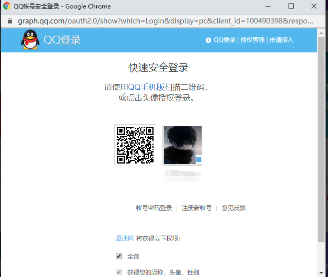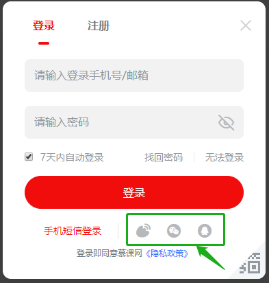 点击这里,比如我点了QQ,就可以通过QQ账号授权给慕课网,避免我再注册个慕课网的账号