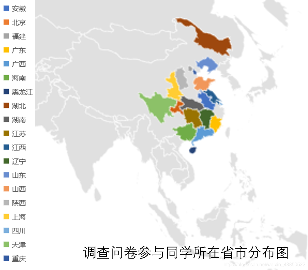 通过分析参与填写问卷的同学的IP地址,我们得到了以下分布图