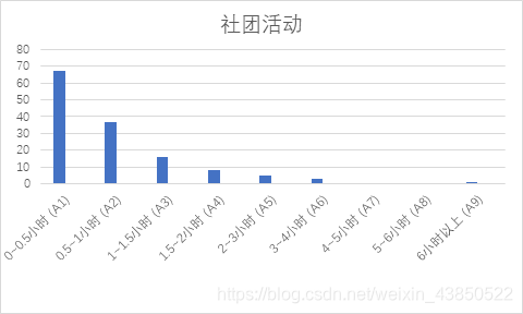 我们分析数据可得,大部分学生不会再一项单独的活动上花费太多的课余时间,因为本来课余时间就不是特别的充足,其次作为一个大学生,仍在求学,作为一个祖国的攻坚力量,自然也没有那么多精力顾全多个活动。