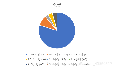 我们以游戏,看视频,购物,社团,恋爱等为例,大部分人花的时间都在0到0.5小时之间,少数人花更多的时间在上面,我们可以得知: