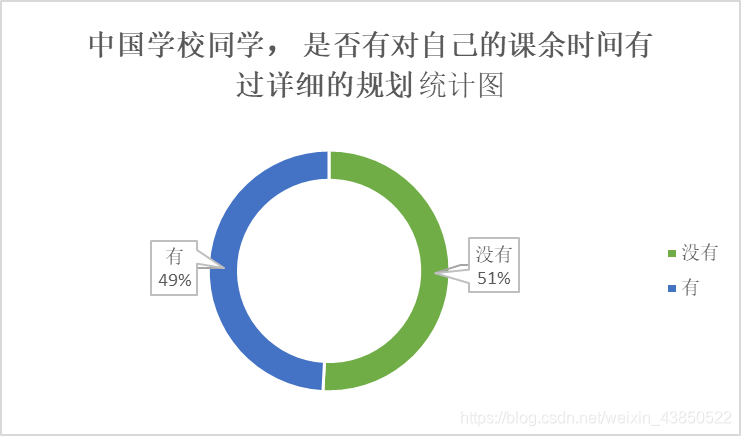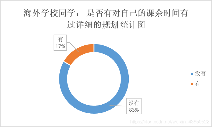 分析:首先,国内外都有相当一部分人缺乏课余时间规划意识;再者,国内大学生课余规划意识强于国外(在这份统计里)。