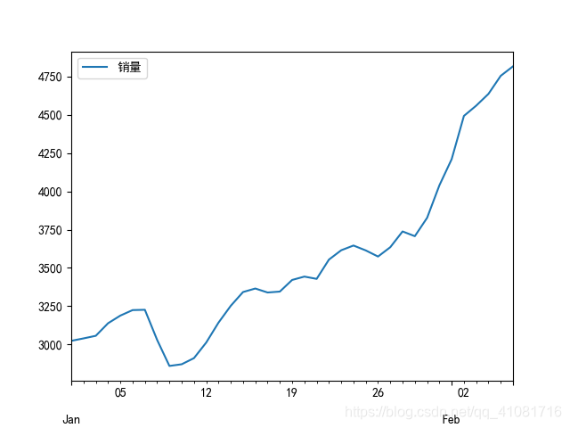 销售数据:第一列为日期(2015/1/1-2015/2/6),第二列为销售量。