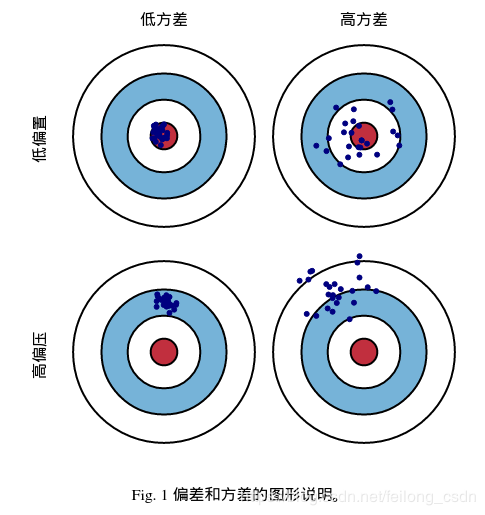 偏差(距离远近):描述的是预测值的期望与真实值之间的差距,偏差越大,越偏离真实数据