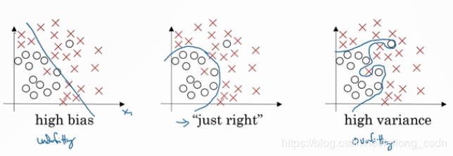 因此在实际工程中我们便可以通过比较训练集误差和测试集误差来看模型是由何种原因导致,然后采取相应的错误,下一节介绍如何优化模型