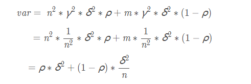 假设有n个随机变量,方差记为σ2,两两变量之间的相关性是ρ,则n个随机变量的均值的方差为: