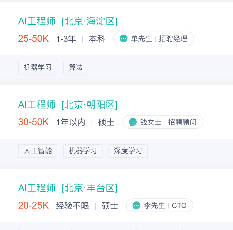 来看一下来自BOSS直聘的最新招聘消息,搜“AI工程师”基本工资没有低于2万的,但是什么样的人能拿到这2万呢?