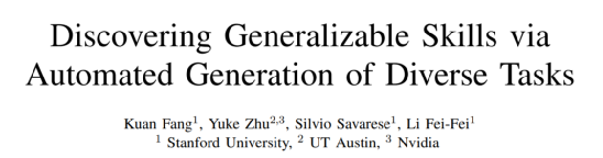 机器人的技能是通过自动生成任务来学习的。每一项技能都与一项由可训练的独特任务相匹配任务生成器。这些技能被训练成专门从事被匹配到的任务。通过生成的多样化任务来发现不同的技能。