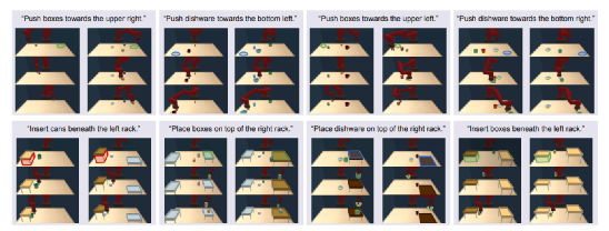 对于机器人操作任务,开发人员肯定希望机器人擅长不同类型的互动(如推、抓、放等)具有特定类型的对象。同时,也希望每项技能都有足够能力去处理场景变化和任务初始的通用性。