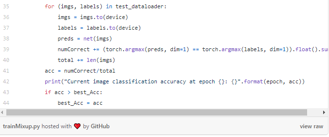 以下代码为训练程序,将批处理大小设置为128,学习速率设置为1e-3,epochs总数设置为30。整个训练进行了两次,一次是带图像混合的,一次是不带图像混合;损失也由自己定义,因为目前,BCE损失不允许带有小数的标签: