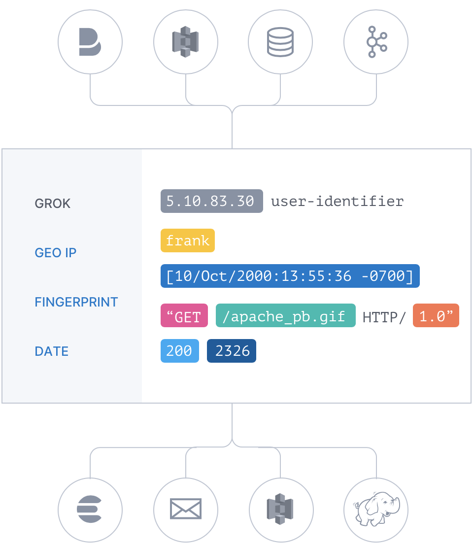 Logstash 是一个数据管道,能够从各种数据源(比如 MySQL 数据库)收集数据,将数据从一处传输到另一处,并加以解析和转换。