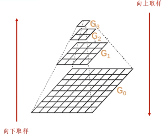 生成图像金字塔主要包括两种方式——向下取样、向上取样。在图11中,将图像G0转换为G1、G2、G3,图像分辨率不断降低的过程称为向下取样;将G3转换为G2、G1、G0,图像分辨率不断增大的过程称为向上取样。