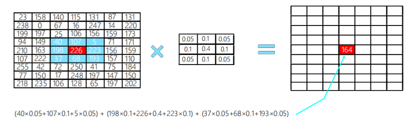 高斯核卷积让临近中心的像素点具有更高的重要度,对周围像素计算加权平均值,如图12所示,其中心位置权重最高为0.4。