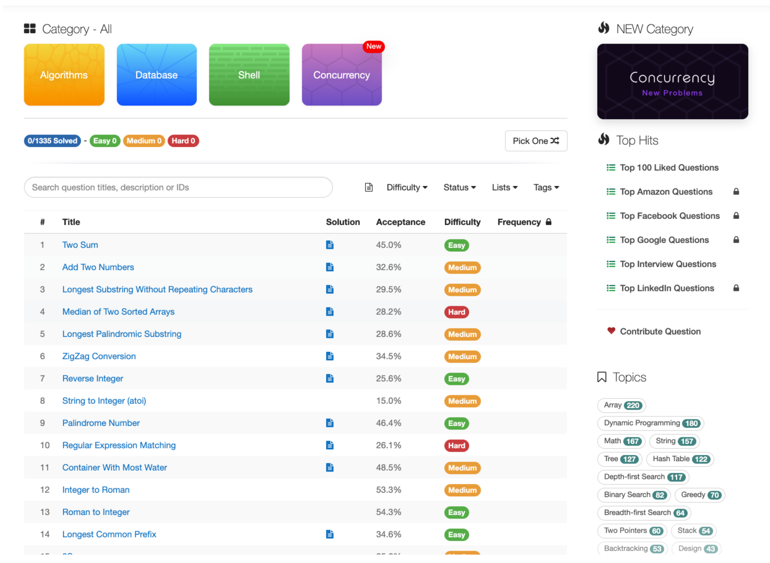 官网:https://leetcode.com/ ; https://leetcode-cn.com