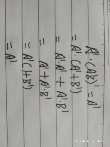 上式表明:当A‘和一个乘积项的非相乘,且A为乘积项的因子时,其结果就等于A’。