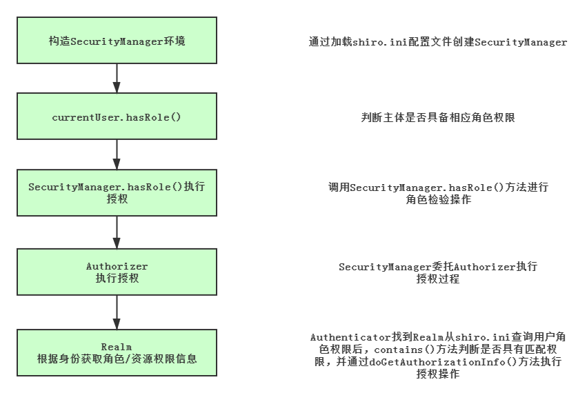 //securityManager委托Authorizer进行角色检验
