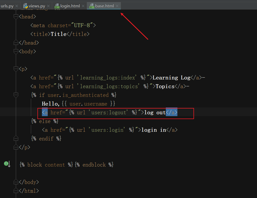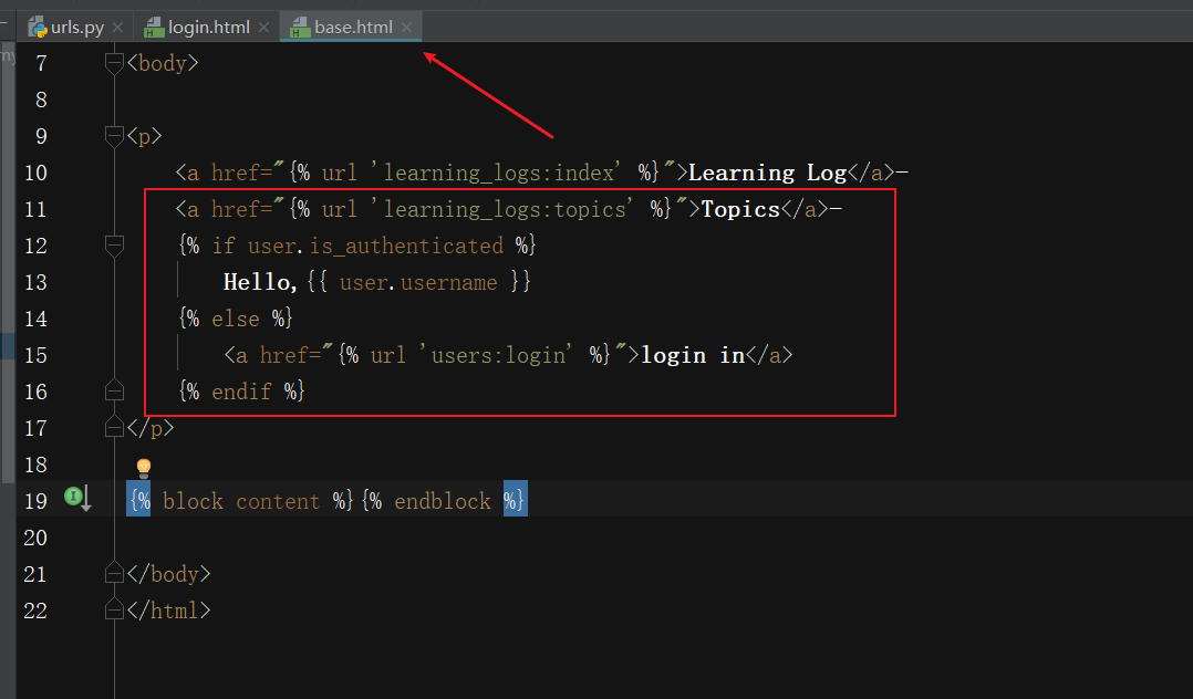 在base.html中添加到登录页面的链接,让所有用户都包含它。并在用户已经登录的时候,不显示!