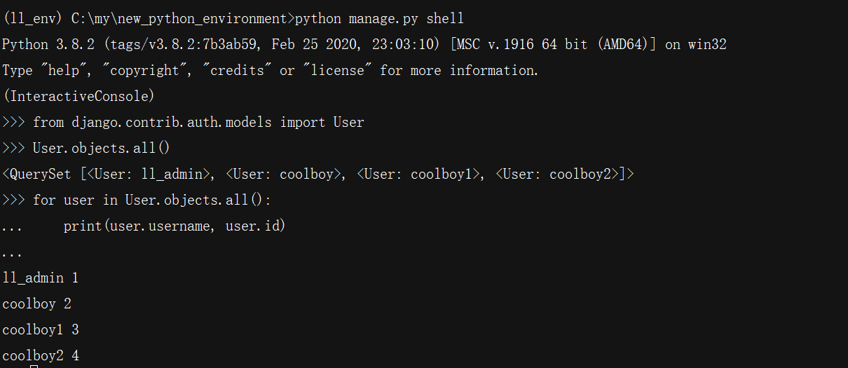 下面来查看已创建的所有用户的ID: