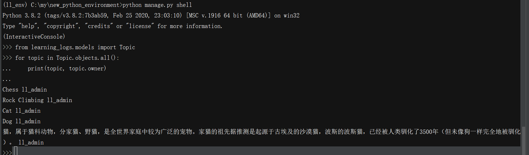 Second! (Django入门之开发用户账号) 开发名为‘学习笔记’的项目:这是一个在线日志系统,让你能够记录所学习的有关特定主题的知识。