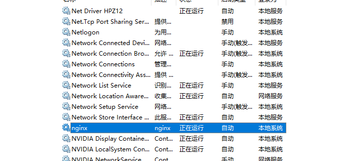 以上内容配置好了之后,在nginx安装目录下以管理员运行命令:.\nginx-service.exe install 就成功将其注册为Windows服务了。这时我们就可以在Windows任务管理器的服务中查看到nginx服务了。