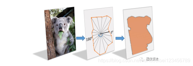 Mask Assembling极坐标表示法提供方向角。轮廓点从一开始就被连接起来0◦(粗线)并组合整个轮廓和Mask。