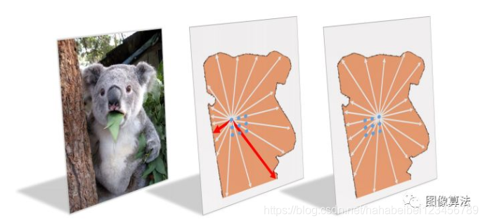 为了看到中间的图片,会出现一个问题,即长度回归非常不同,而中心点在右侧的位置更合适。所有等高线的长度回归更为接近,36条光线的距离将更为平衡。极性中心可以给右边的点一个更高的中心度得分,给中间的点一个中心度得分,这样右边的得分在推理中就更高。