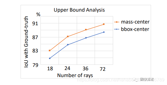当mass center作为实例中心使用时,当条纹的数量持续增加时,平均或光线与真实GT的平均值为90%或更高,因此,对于射线模型的性能收缩的担忧远远没有消失。本阶段需要解决的问题是如何继续改进基于射线建模的网络性能。