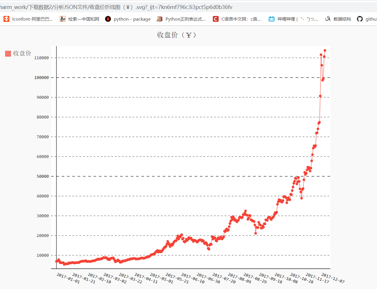使用Pygal来实现收盘价的折线图!