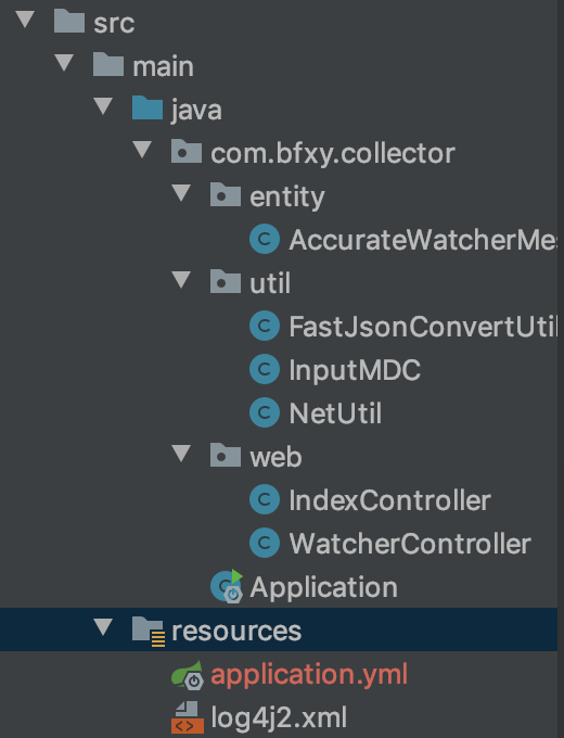 引入log4j2替换SpringBoot默认log,demo项目结构如下: