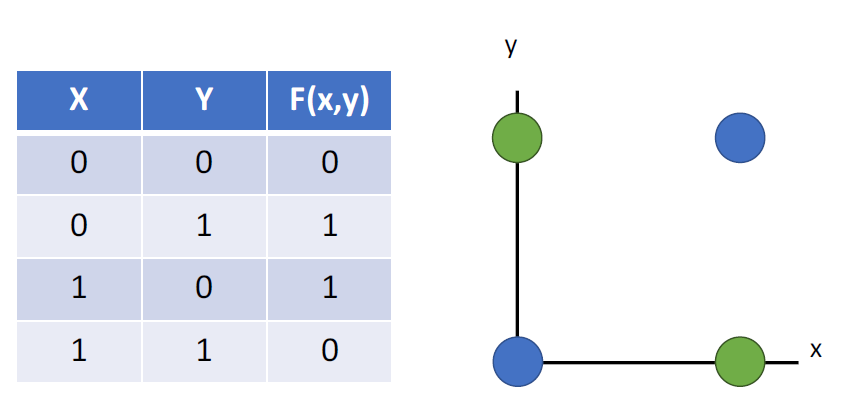 很多问题不能通过线性分类来解决,比如在上个世纪把人工智能打入谷底的XOR问题