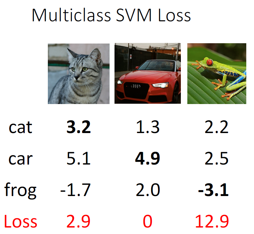 平均的Loss则是 L = ( 2.9 + = + 12.9 ) / 3 = 5.27 L = (2.9+=+12.9)/3=5.27 L=(2.9+=+12.9)/3=5.27