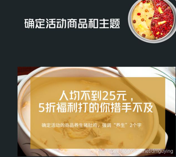 1、确定活动的商品“养生猪肚鸡”,强调【养生】