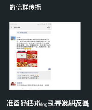 商户本身有自己的 2 个微信群,把软文发到群里,引导用户转发到朋友圈,群内的引导话术,转发朋友圈的话术都要提前准备好。