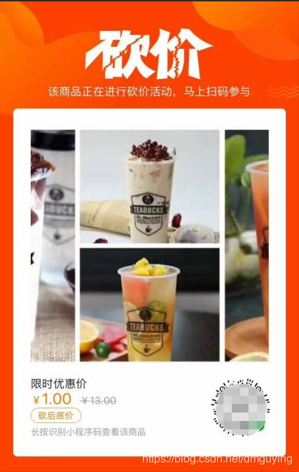 在老板迫切希望增加客流,店铺成本允许的情况下,我们在选品上将基础奶茶换成招牌黑砖奶茶(大杯原价15元),设置为0.01元免费喝的20人砍价,并在海报、商品详情页突出材料“黑砖”【一口吸溜Q弹】的卖点。