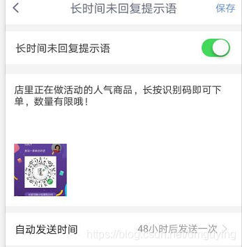 ①群推访客、客服消息回复都可以二次提醒客户到店访问,下图是长时间未回复提示语的设置: