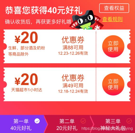 大家可以看看天猫优惠券,看到这两个红包你能发现其中的区别吗?