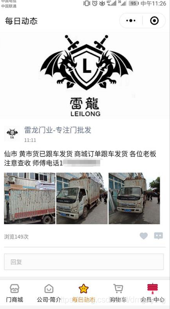 大家所熟悉的雷龙门业就是通过动态将最新的发货信息对外通知,让购买产品的客户二次登陆关注自己的订单配送情况: