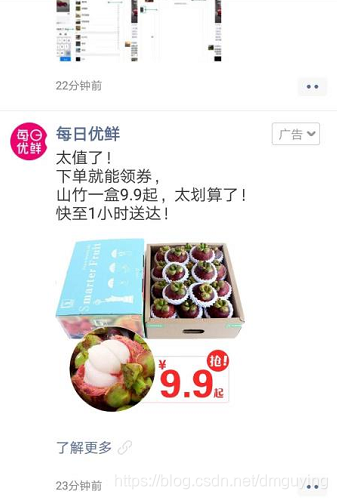在最近这半个月,每日优鲜出现曾在我朋友圈3次,第一次特惠信息促使我打开,领取新人券买单后,第二、三次在朋友圈再出现,我都会不由得点进去领券消费。现在周末想买菜时,第一时间会打开每日优鲜看看有什么活动的产品。这就是每日优鲜通过朋友圈广告成功把一个新客慢慢养熟的过程。