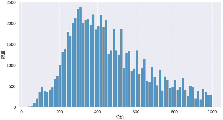 我们去掉房子面积大于400的372套房源,仅统计面积低于400的8万套房源。